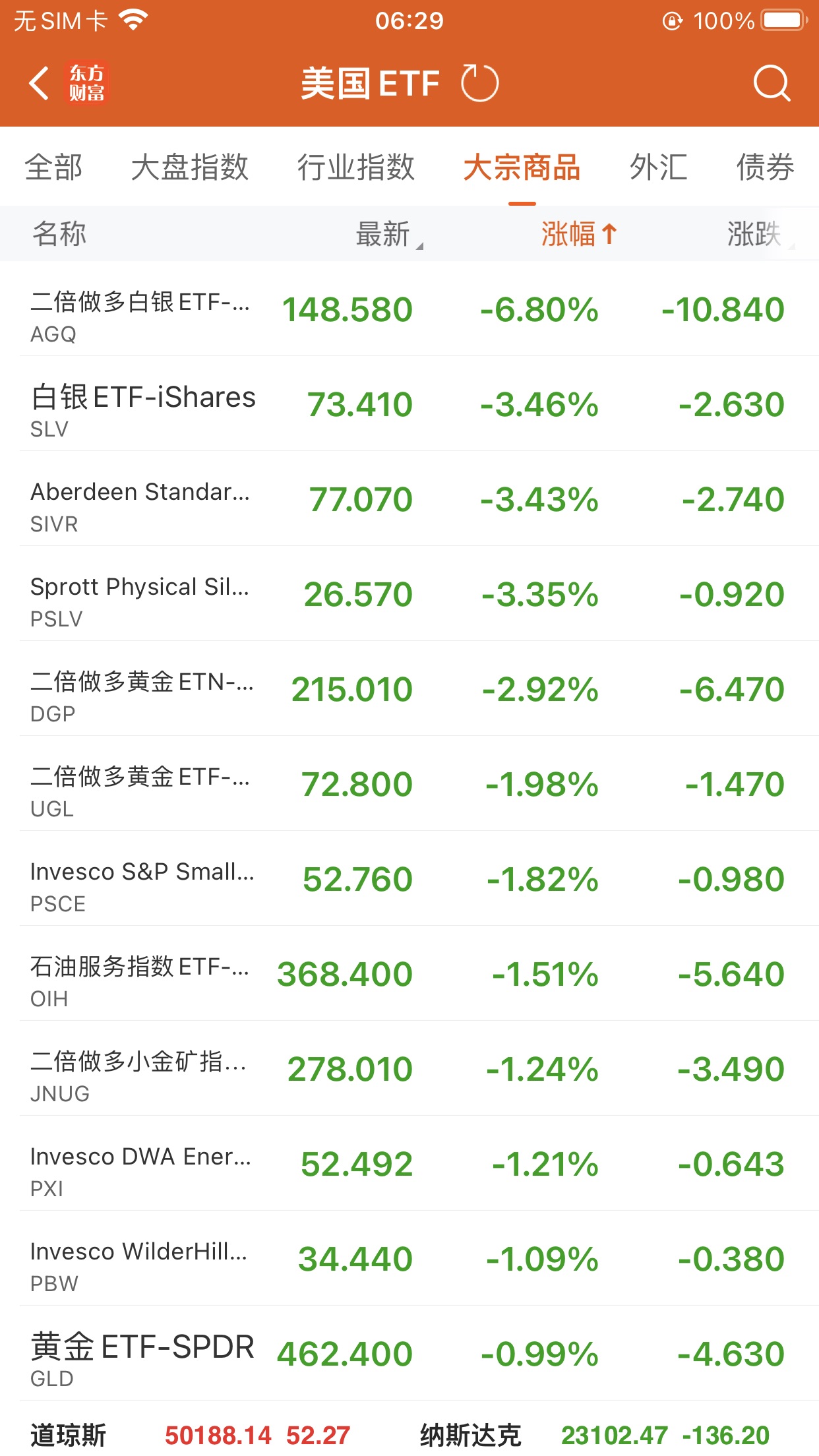 大宗商品型ETF跌幅榜Top5