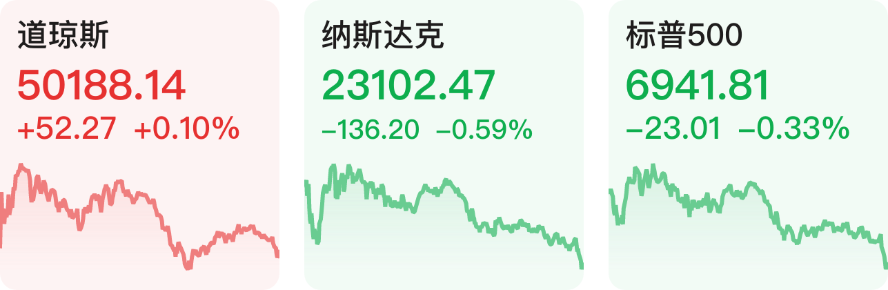 美股三大指数10日收盘涨跌不一,道指续创历史新高。截至收盘,道指涨0.1%,纳指跌0.59%,标普500指数跌0.33%。盘面上,大型科技股多数下跌,谷歌跌超1%,英伟达跌0.79%,苹果跌0.34%,微软跌0.08%,特斯拉涨近2%。中概股多数上涨,纳斯达克中国金龙指数涨0.87%。禾赛科技涨超6%,阿特斯太阳能、腾讯音乐涨超3%,阿里巴巴、理想汽车涨超2%,小鹏汽车、蔚来、京东集团涨超1%,金山云、唯品会跌逾2%,贝壳、老虎证券跌超1%。