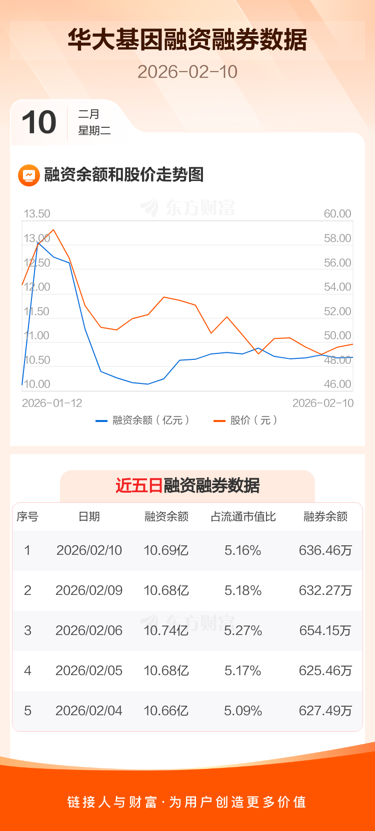 交易所最新数据显示,华大基因于2026年2月10日获融资买入4059.69万元,融资偿还3950.81万元,当日融资净买入108.88万元。目前,该股融资余额10.69亿,占流通市值比例为5.16%。