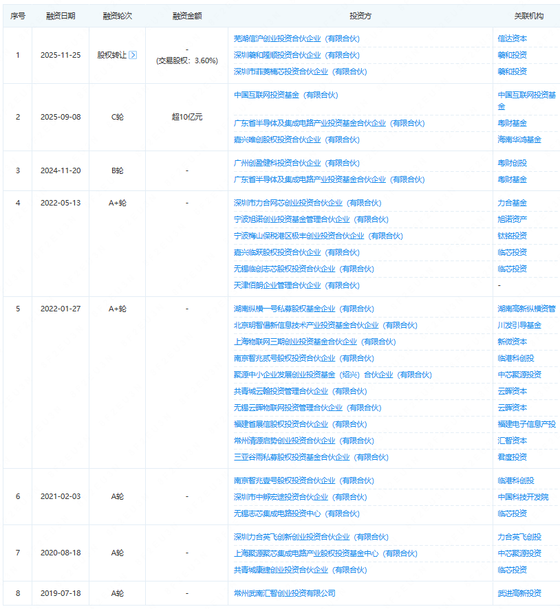 融资历程方面,工商信息显示,楠菲微共经历8轮融资,该公司最近一期于2025年9月完成的C轮融资总金额超10亿元。投资方包括芜湖信沪创业投资合伙企业(有限合伙)、深圳羲和隆顺投资合伙企业(有限合伙)、深圳市菲菱楠芯投资合伙企业(有限合伙)。