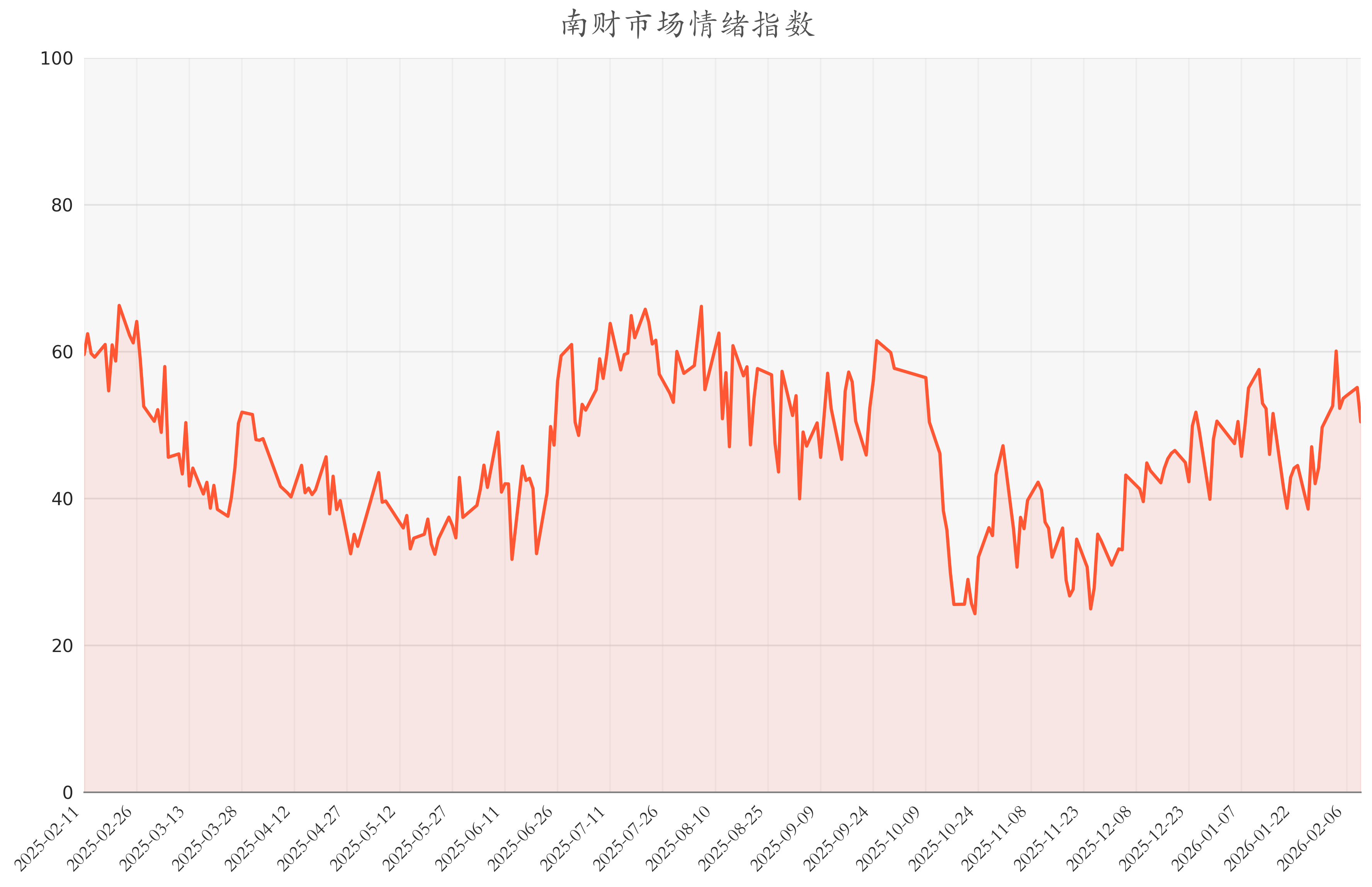 今日南财市场情绪指数为50.45,市场投资热度降低