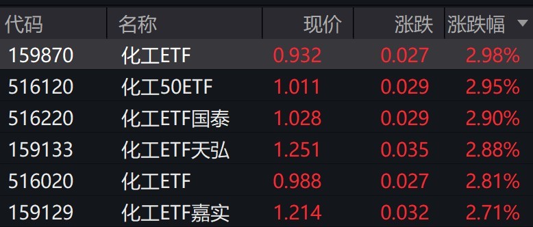 受盘面影响,化工相关ETF涨近3%。