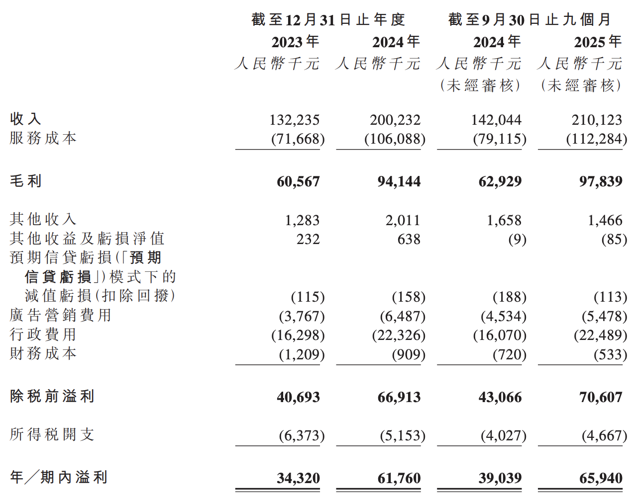 其净利润由2023年的3430万元增至2024年的6180万元,并进一步从截至2024年9月30日止九个月的3900万元增长至2025年的6590万元。
