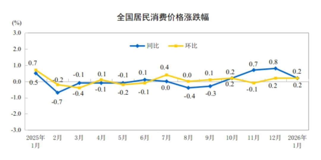 国家统计局2月11日发布的数据显示,1月份,居民消费需求持续恢复,居民消费价格指数(CPI)环比上涨0.2%,同比上涨0.2%,扣除食品和能源价格的核心CPI同比上涨0.8%;工业生产者出厂价格指数(PPI)环比上涨0.4%,同比下降1.4%。
