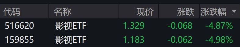 影视概念股走低,华策影视跌超10%,万达电影跌超9%,中国电影跌超8%。