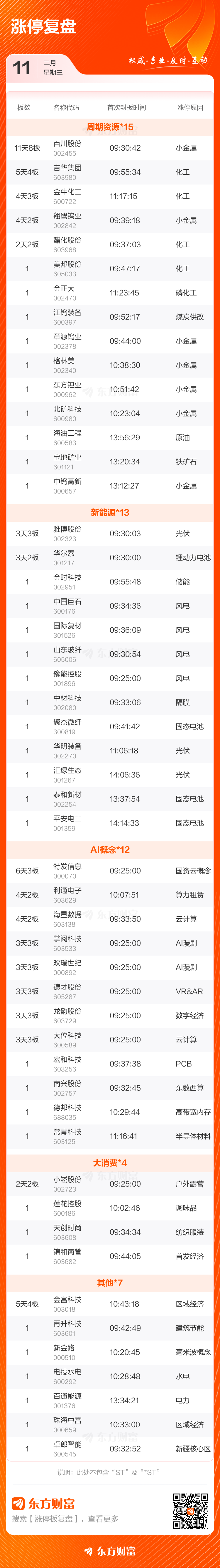 2月11日涨停复盘:60股涨停 百川股份11天8板