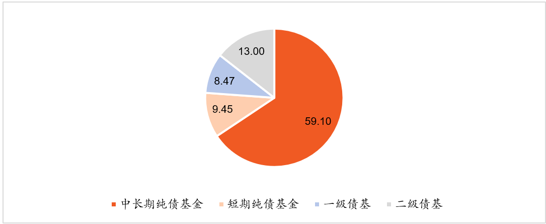 图2:2025Q3中国市场主要四类债基规模(千亿元)及占比
