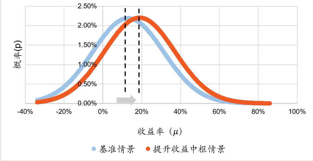 图5:其他条件不变提升资产收益预期中枢后收益概率分布变化