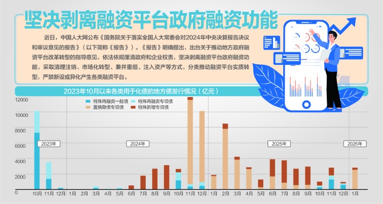 记者梳理发现,多地政府工作报告提到推进融资平台“转型退出”“有序出清”等内容,也有省份明确了具体的化债举措。比如湖北就提出,通过“债务重组、平台转型、开源节流、三资盘活、金融创新”五措并举,稳妥有序化解地方政府债务风险。