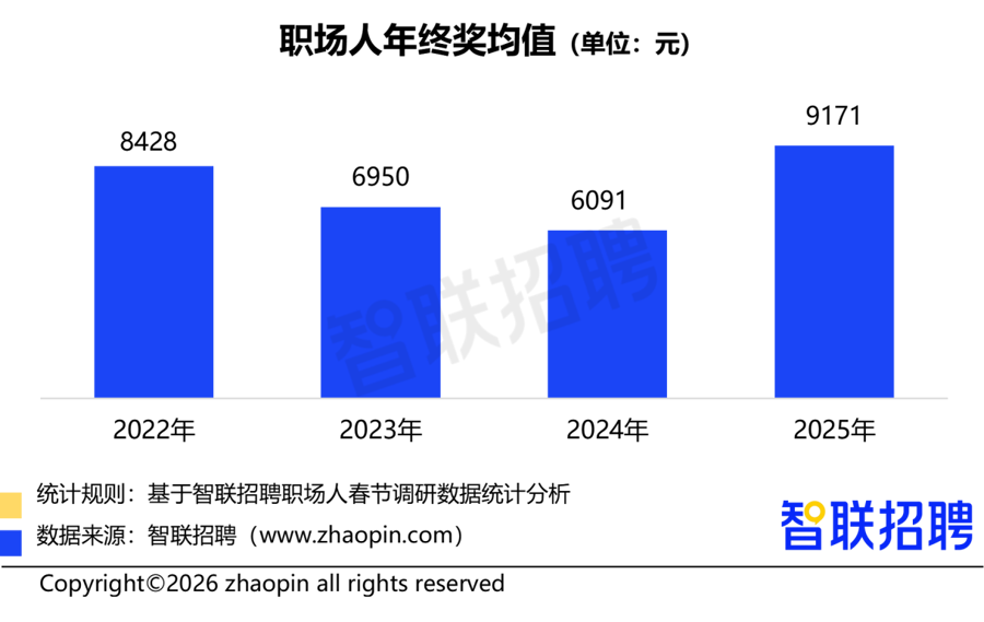 比起“虚头巴脑”的总结,实实在在的年终奖才是真职场慰藉。调研数据显示,有58.6%的职场人有可能拿到年终奖。有年终奖的人群中,有24.9%的职场人能拿到1万-5万元的年终奖,占比最高。值得关注的是,2025年年终奖平均值约为9171元,较2024年增加3080元,创下近4年来的最高纪录。
