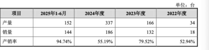 在份额收缩的同时,库存积压问题凸显:2022年-2025年上半年,公司累计产量为689台,累计销量仅480台。
