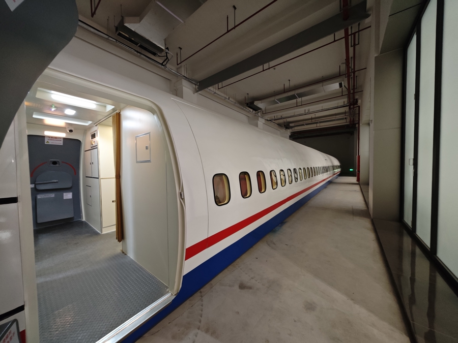 前不久,园区花“大手笔”打造的机场场景也闪亮登场,从“值机柜台”到“安检处”再到“登机口”一应俱全。最令人惊喜的是,一架退役飞机静静地立在那里,让剧组可以实景拍摄短剧版《冲上云霄》。为了方便架设机位,飞机的一侧还做了改装,可以升降。