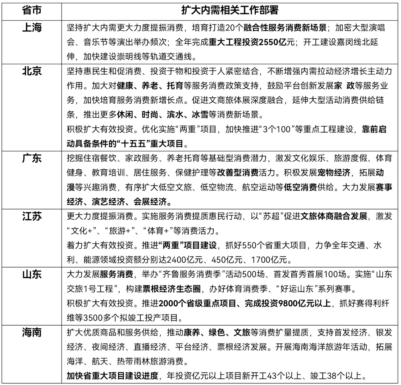 “今年扩内需仍是地方首要任务,并且从传统的实物消费刺激转向实物与服务并重。”赵伟说。