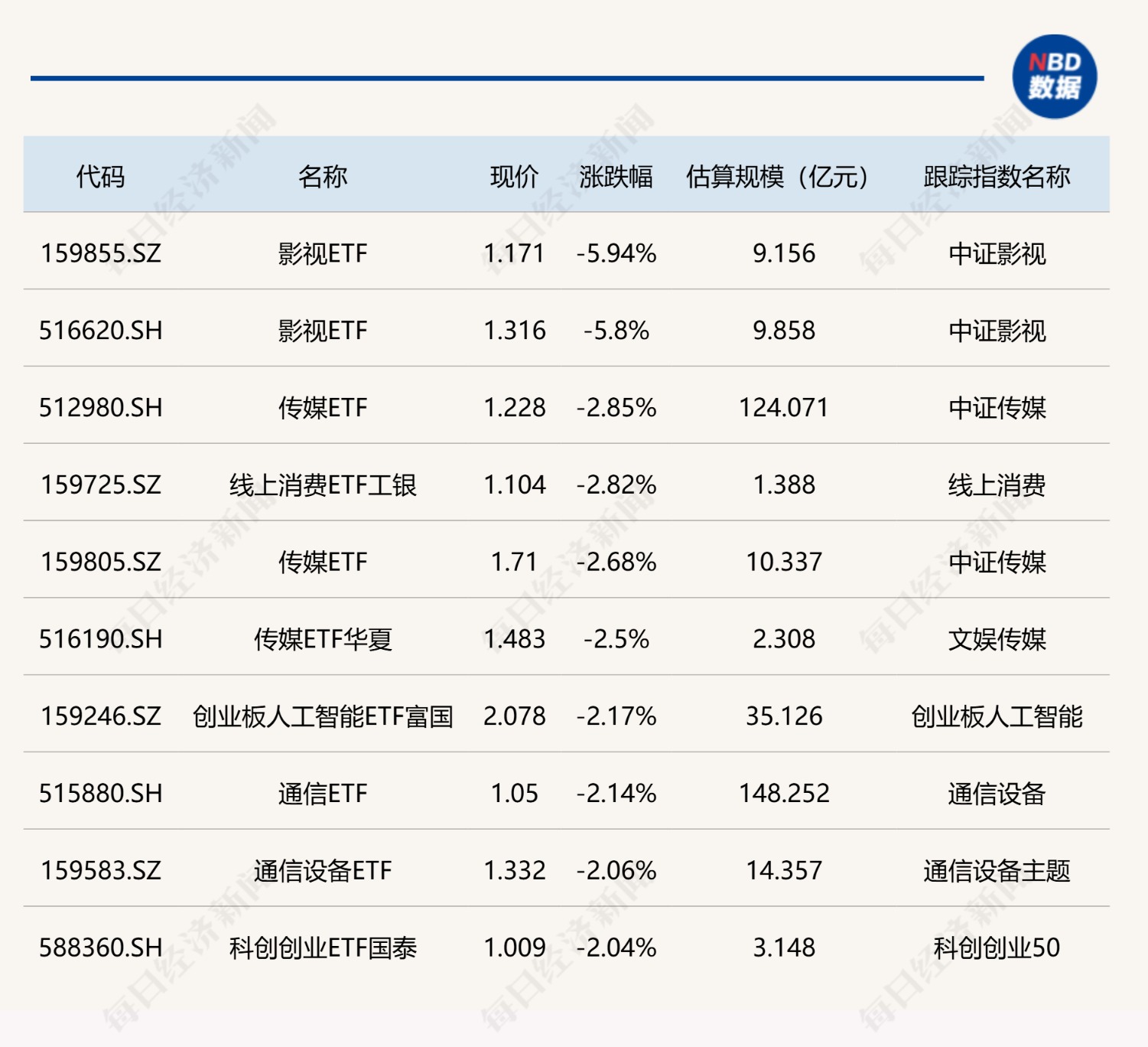 下跌方面,影视ETF跌超5%。