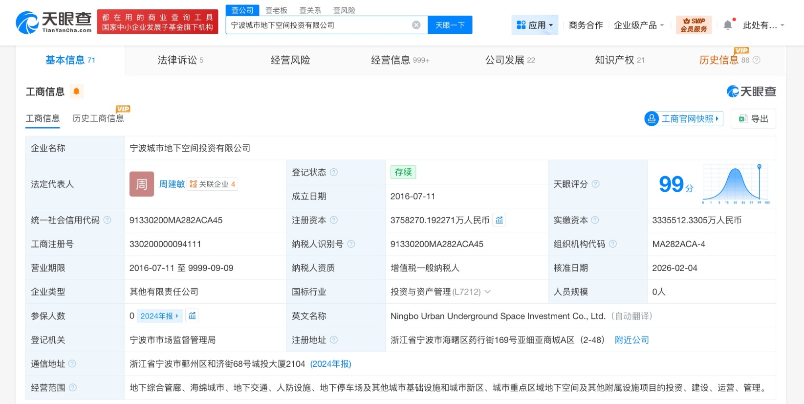 宁波城市地下空间投资公司增资至375.8亿 增幅约11%