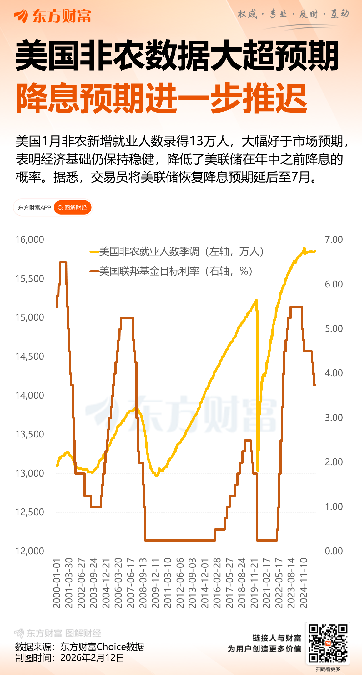 分析称,美国1月非农就业数据远超预期,表明经济基础仍保持稳健,降低了美联储在年中之前降息的概率。据悉,交易员将美联储恢复降息预期延后至7月。