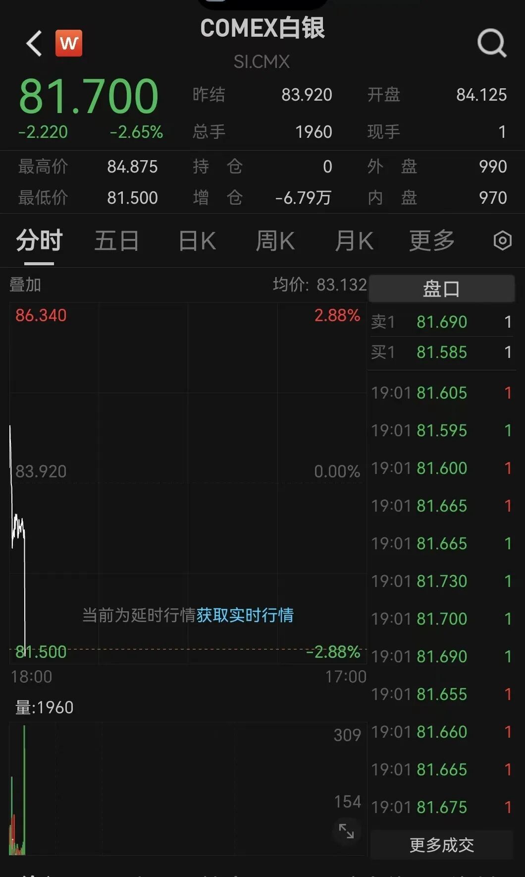 白银今日开盘直线跳水