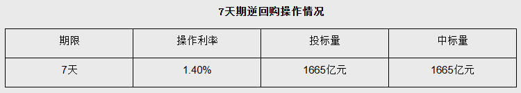 央行开展1665亿元7天期逆回购操作,4000亿元14天期逆回购操作