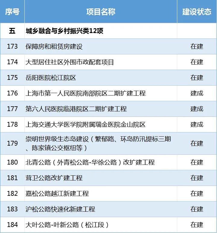 2026年上海市重大工程计划安排正式项目184项,其中科技产业类62项,社会民生类29项,生态文明建设类13项,城市基础设施类68项,城乡融合与乡村振兴类12项;另计划安排预备项目14项。