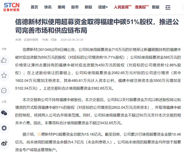 获福建中碳51%控股权,固态电池突破,碳纤维进入光伏、光纤、半导体领域,扭亏为盈