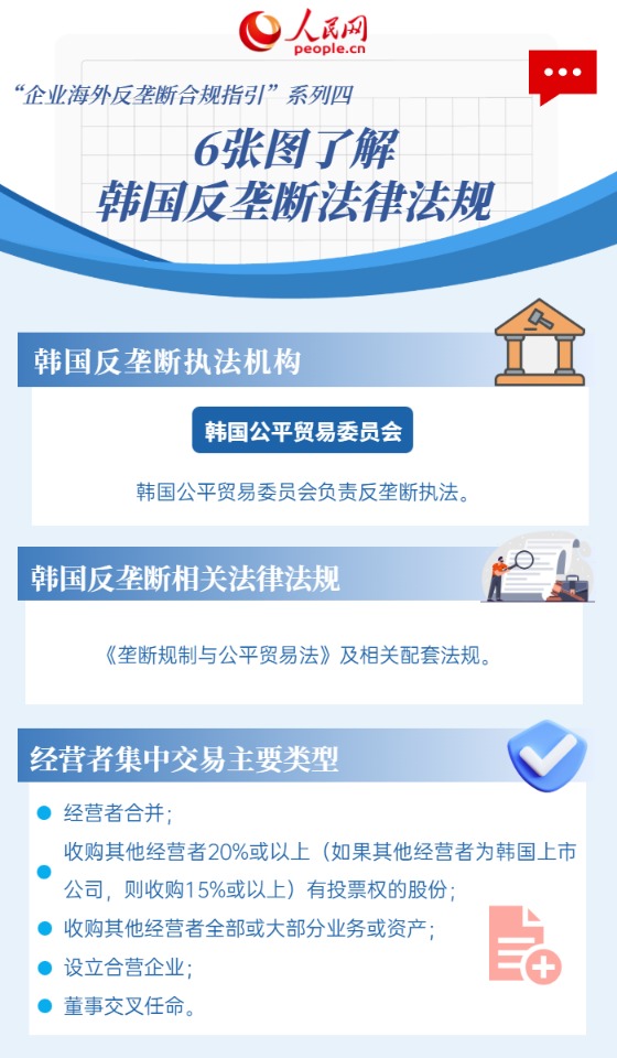 近年来,我国企业国际化进程加速,越来越多企业“走出去”参与国际竞争。针对企业比较关心的海外反垄断合规问题,人民网联合市场监管总局反垄断二司特推出“企业海外反垄断合规指引”系列图解,按国别市场分类带您了解境外反垄断法律制度,为广大企业经营者提供参考。