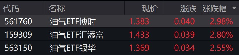 油气概念股走强,油气相关ETF涨超2%