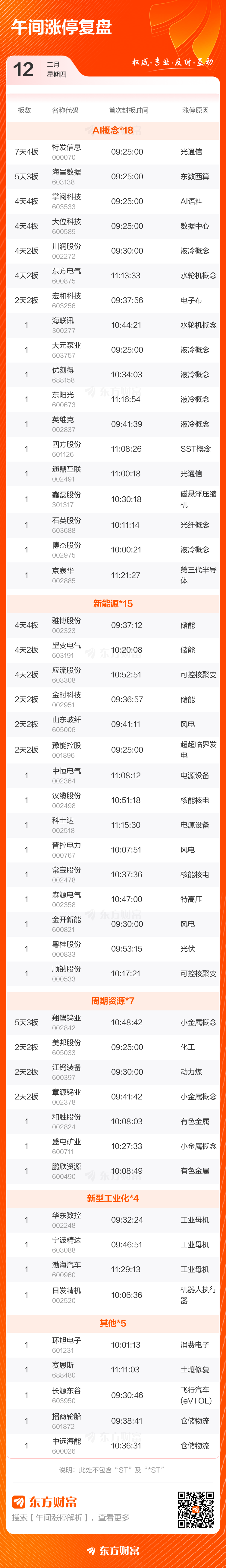 2月12日午间涨停复盘:57股涨停 特发信息7天4板