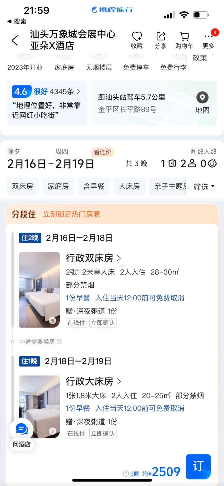 2月10日晚间21世纪经济报道记者从OTA平台上搜索除夕当天到2月19日开始的汕头和泉州等地连锁价格酒店均呈现出一定程度的上涨,众多经济型和中端酒店价格都飙升至千元。