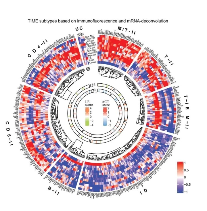 借助CLIM-TIME平台,研究团队将391种常见肿瘤抑癌基因突变驱动形成的转移瘤微环境划分为7种类型。综合分析表明,对T细胞治疗耐受的转移瘤主要呈现两类微环境特征:“髓系细胞富集但T细胞排斥型”和“免疫荒漠型”。