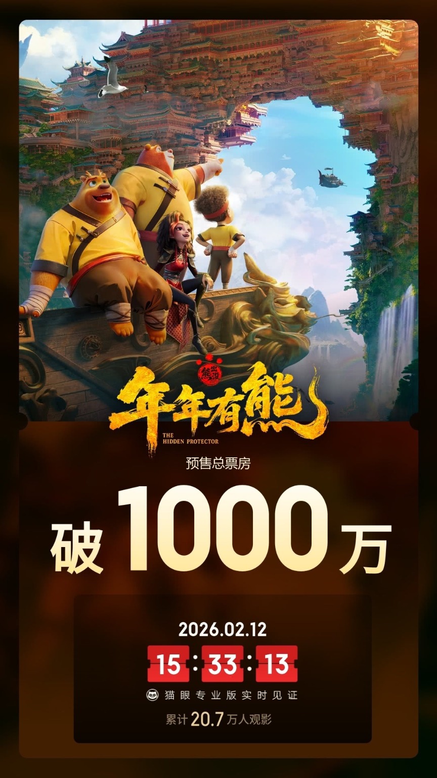 电影《熊出没·年年有熊》预售票房破1000万