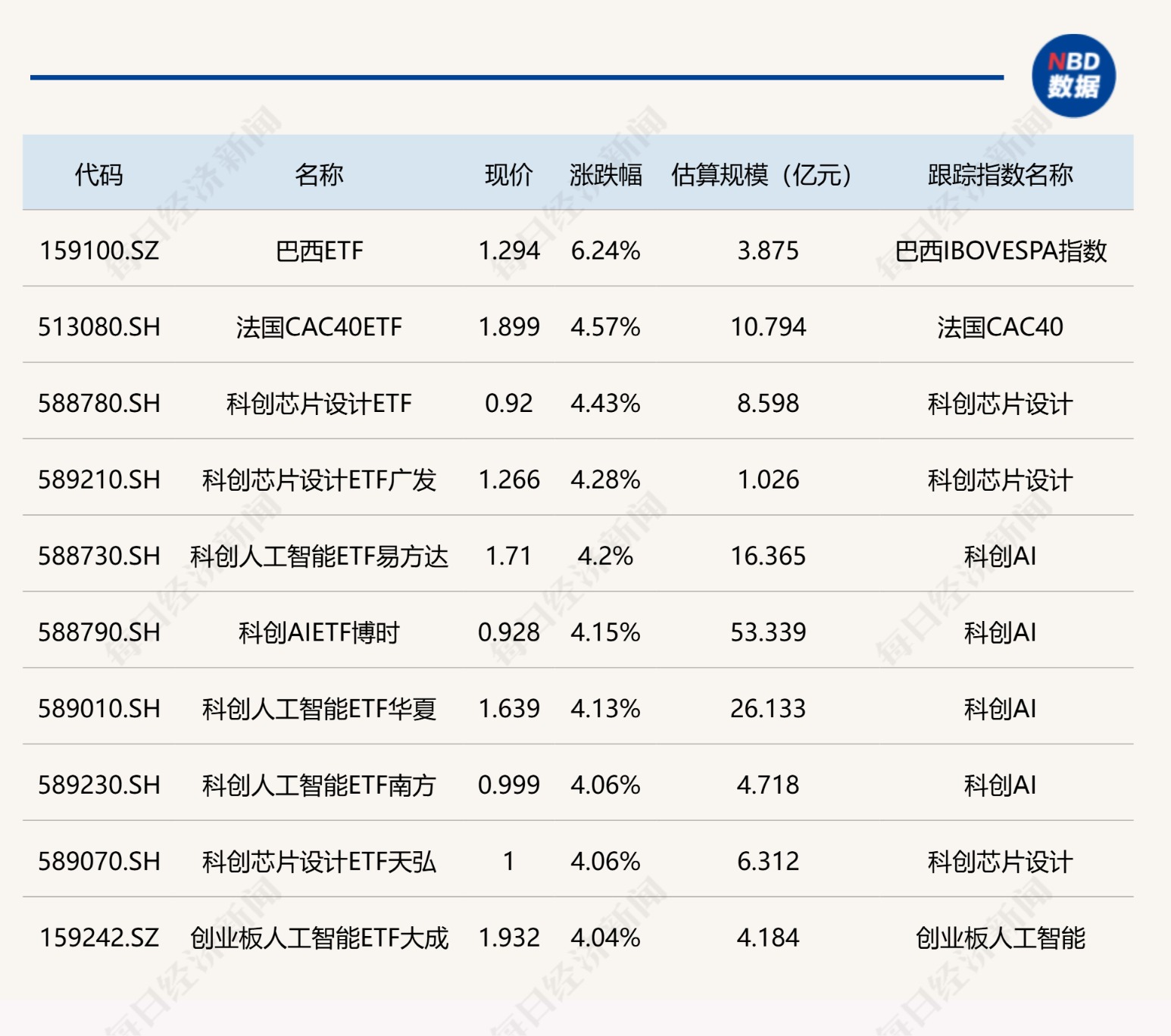 ETF今日收评 | 巴西ETF涨超6%,法国、科创芯片设计相关ETF涨超4%