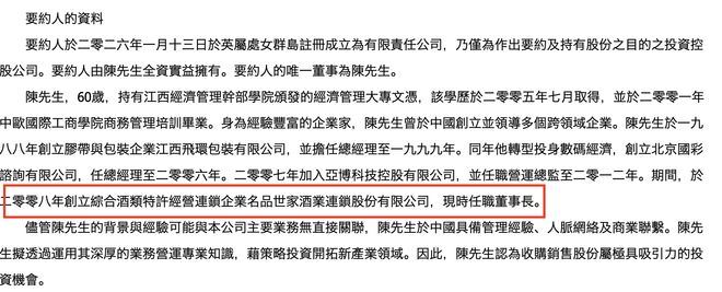 2月9日,港股上市公司环球印馆公告,名品世家酒业连锁股份有限公司创始人、董事长陈明辉通过其全资公司,以约2289万港元收购其约65.54%的股份。