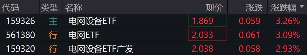 受盘面影响,电网设备相关ETF涨约3%。