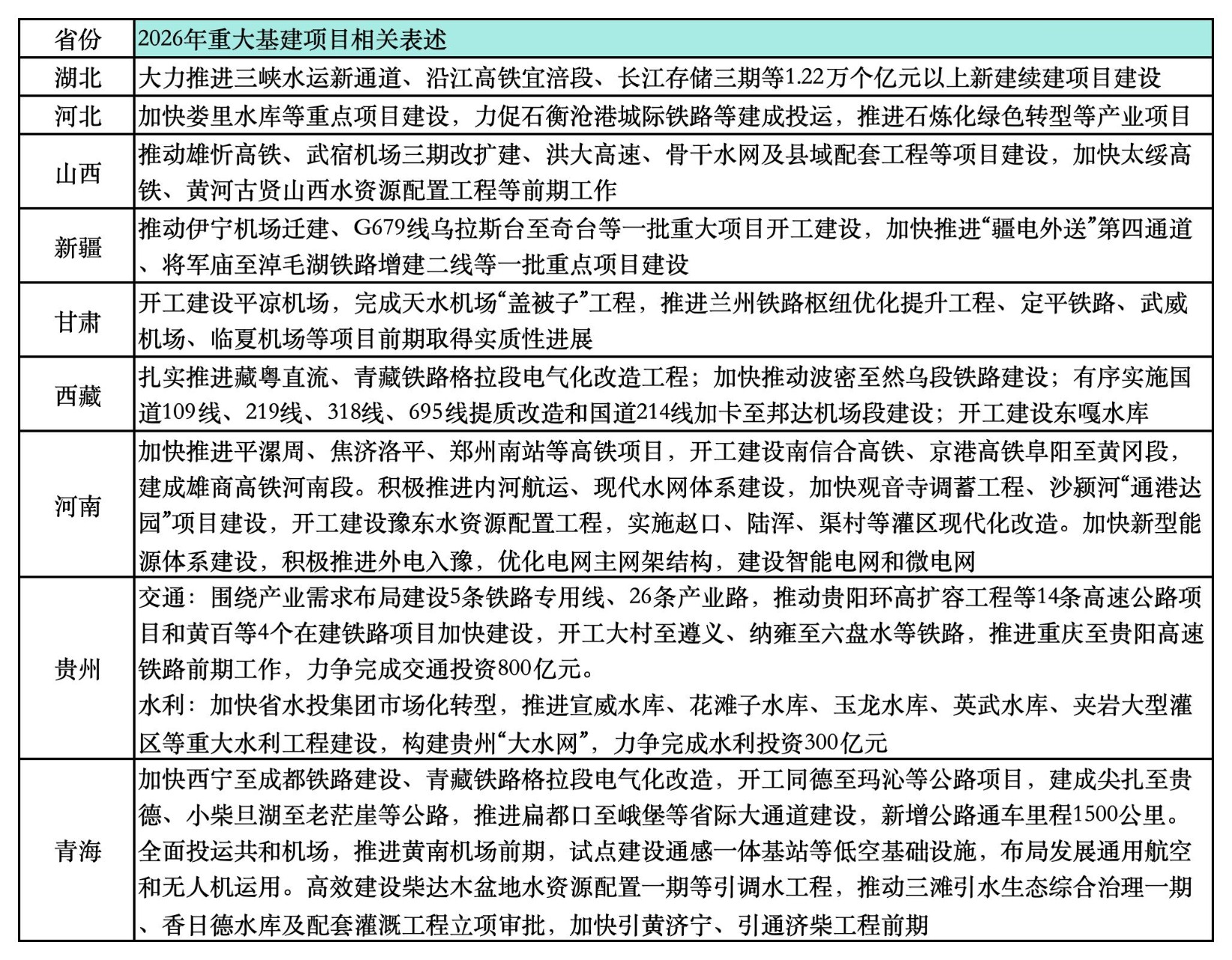 国盛证券首席经济学家熊园对界面新闻指出,从地方两会来看,2026年固定资产投资仍以“扩大有效投资”为主线,政策侧重点更加突出结构优化与民间投资带动。一方面,各地普遍强调以重大项目为抓手,加快交通、能源、水利及新型基础设施等领域建设,继续发挥基建投资对稳增长的支撑作用;另一方面,更加注重提升产业投资比重,围绕新质生产力、战略性新兴产业及数字基础设施布局增量。