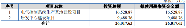 招股书披露,本次北交所上市,嘉晨智能拟公开发行股票数量不超过2070万股(在未考虑超额配售选择权的情况下),拟募集资金2.6亿元,用于电气控制系统生产基地建设项目、研发中心建设项目。