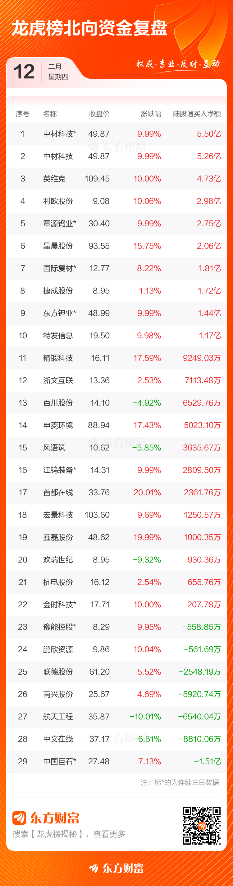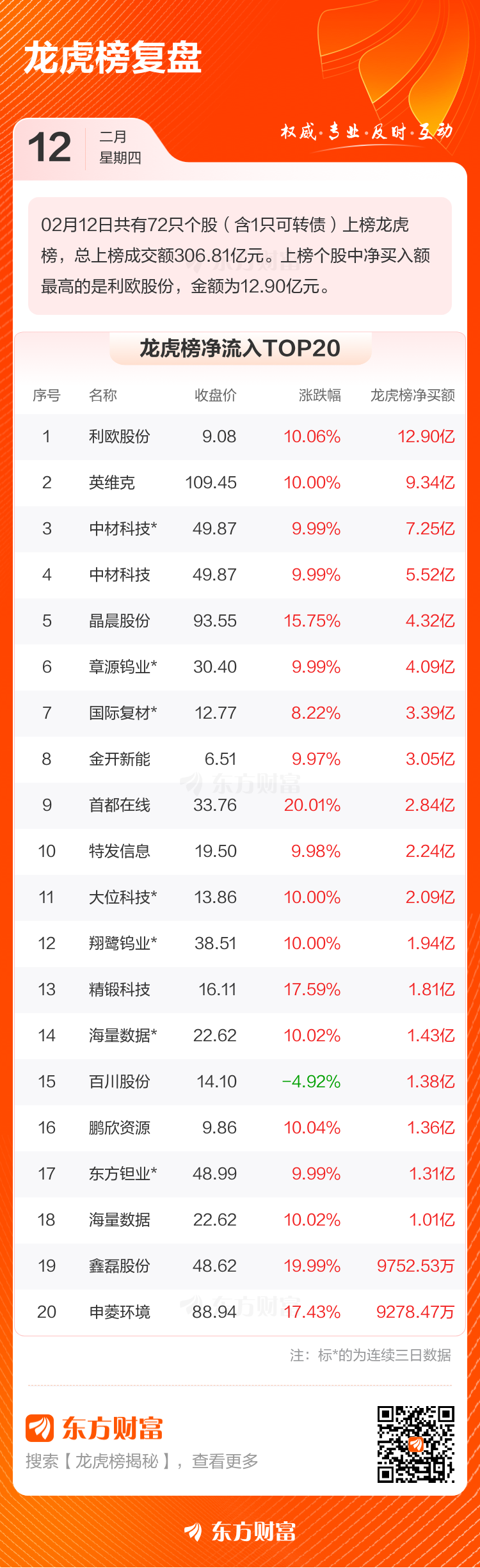 2月12日龙虎榜复盘:利欧股份净买额居首