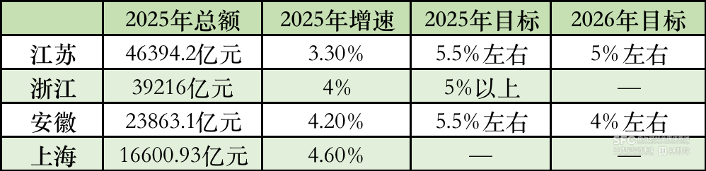 在长三角,江苏、安徽均下调了社零增速目标:对于2026年,江苏目标社会消费品零售总额增长5%左右;安徽目标社会消费品零售总额增长4%左右。