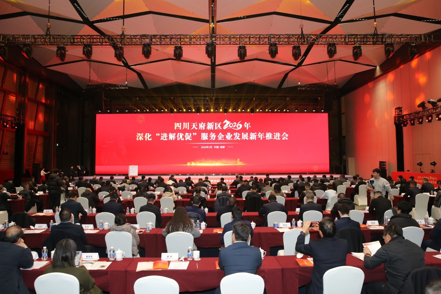 2月11日,一场事关区域营商环境与产业未来的活动——四川天府新区2026年深化“进解优促”服务企业发展新年推进会召开。会上,系统性地推出了“四位一体”企业服务包,包括“市场主体全生命周期引培机制”“企业高质量发展机会清单”“产业人才精准支持政策”及《公园城市建设》电子专刊。