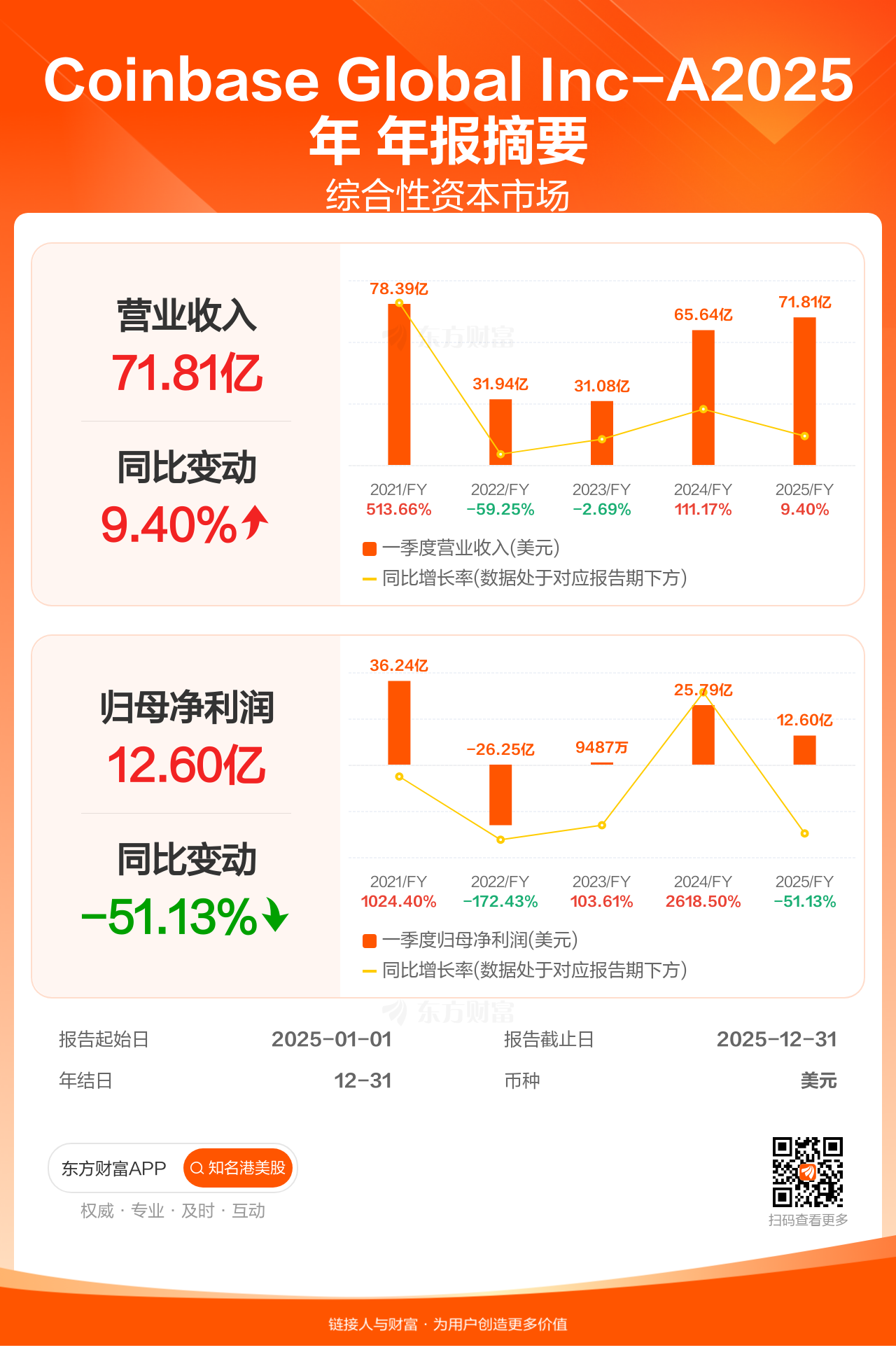 图解财报:Coinbase Global Inc-A年报盈利12.60亿美元,同比减少51.13%