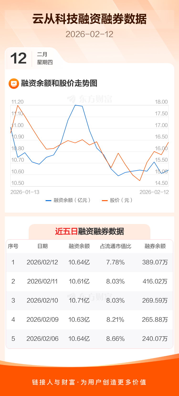 交易所最新数据显示,云从科技于2026年2月12日获融资买入6828.06万元,融资偿还6542.32万元,当日融资净买入285.74万元。目前,该股融资余额10.64亿,占流通市值比例为7.78%。