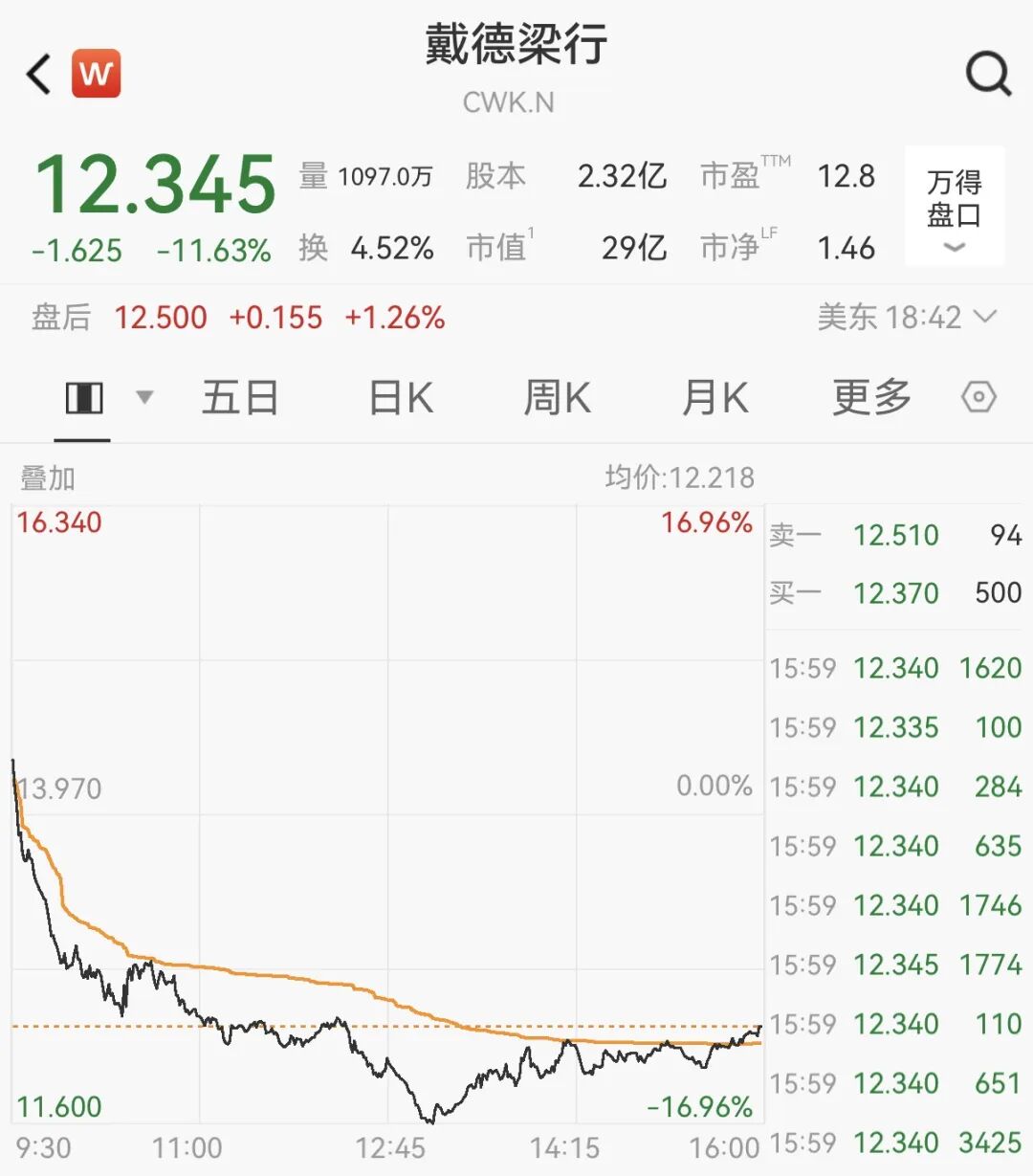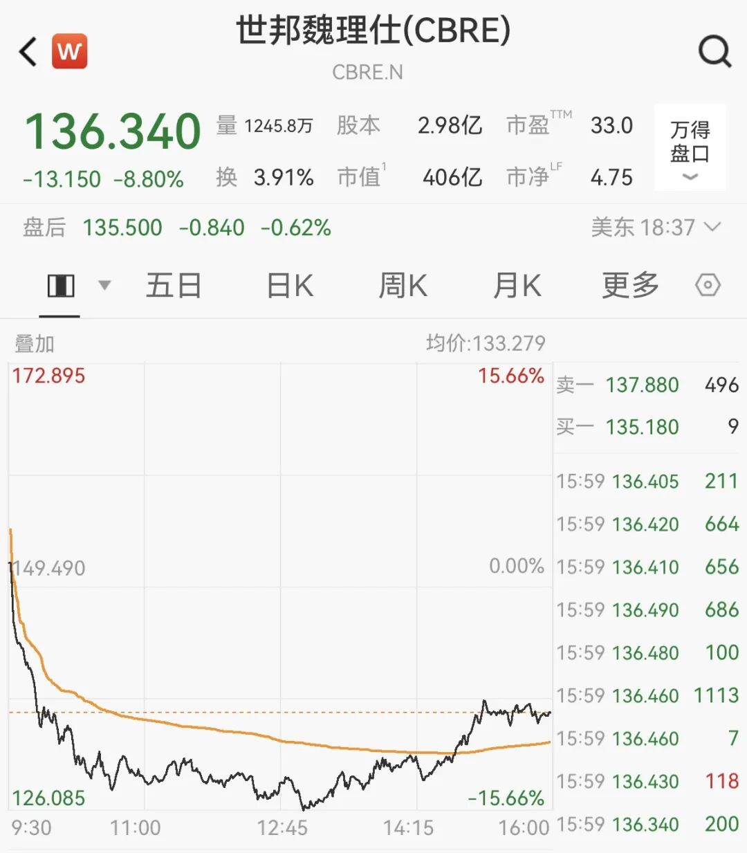 美股主要商业地产服务公司集体暴跌。大型商业地产服务公司世邦魏理仕股价收跌8.8%,仲量联行下跌7.6%,戴德梁行下跌11.63%。