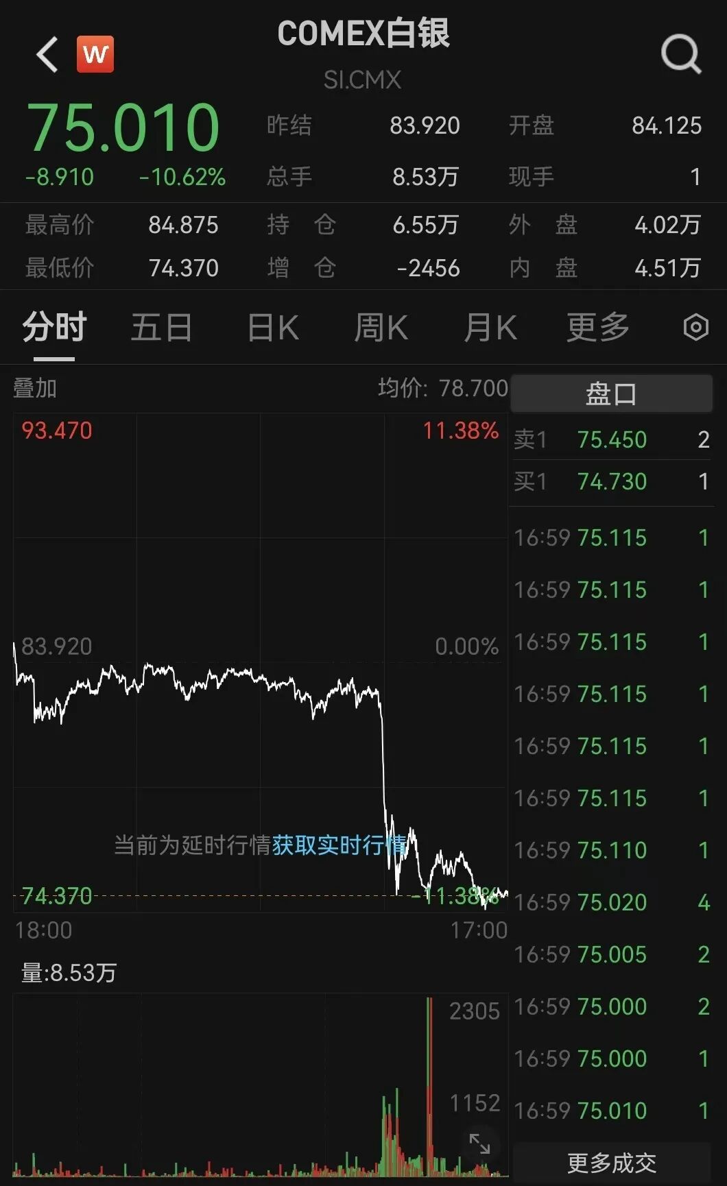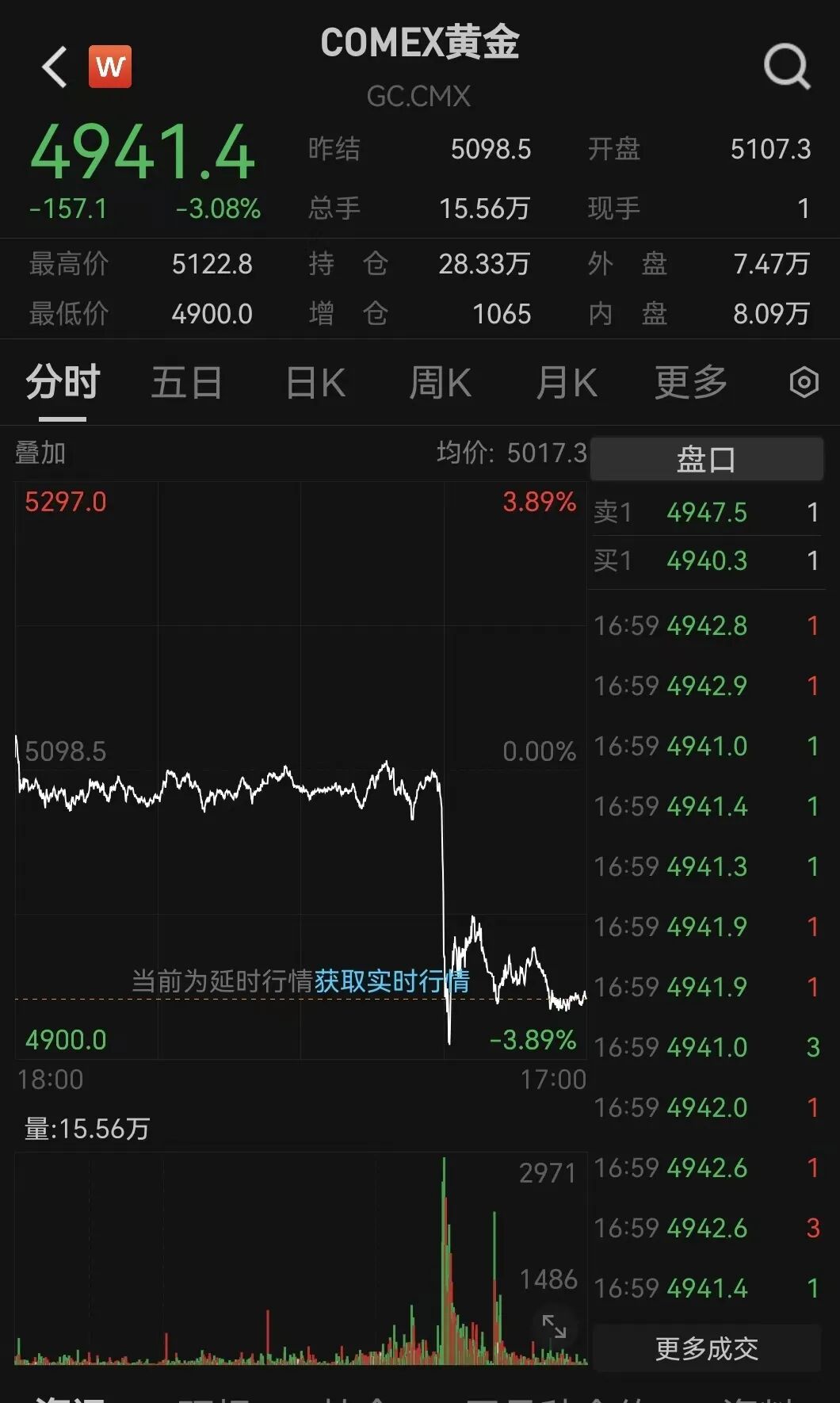黄金再失守5000美元白银暴跌11%
