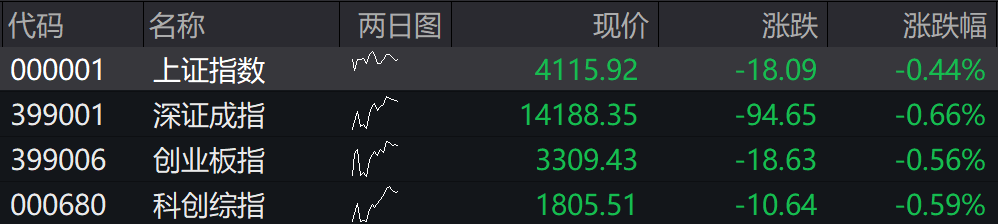 沪指低开0.44%,深成指低开0.66%,创业板指低开0.56%,科创综指低开0.59%。