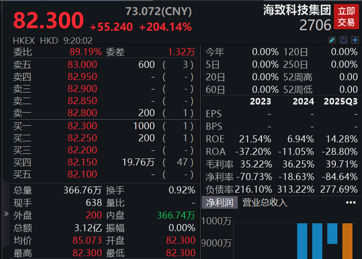 新股海致科技集团上市首日涨逾200%。