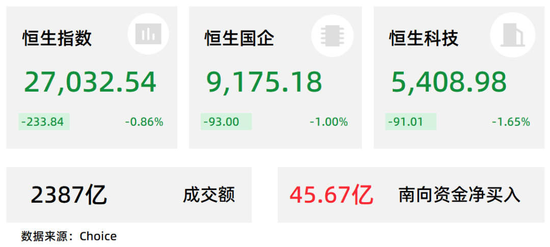 2月12日,港股三大指数表现低迷,大市止步3连升行情。恒生科技指数跌1.65%,恒生指数跌0.86%险守27000点,国企指数跌1%。