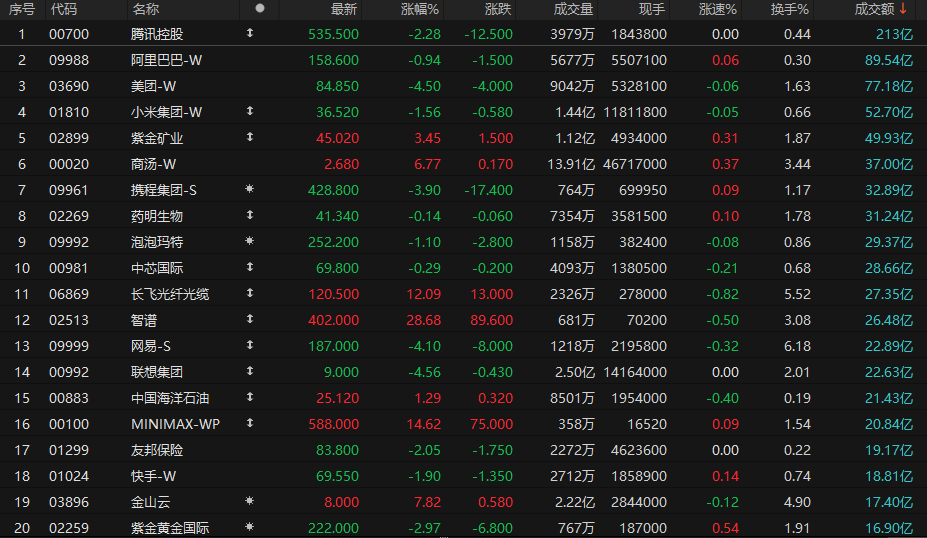 盘面上,大型科技股全线下跌拖累市场情绪低迷,美团、网易跌超4%,百度、腾讯控股跌超2%,快手、小米、京东、阿里巴巴皆有跌幅;内银股、中资券商股、保险股等大金融多数下跌令大市进一步承压;餐饮股走低,九毛九跌超5%,权重股海底捞跌超3%;影视股低迷,英皇文化产业跌近6%;啤酒股、旅游及观光、手游股、云计算、生物医药股等下跌。