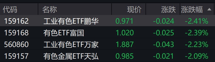 受盘面影响,工业有色相关ETF跌超2%。