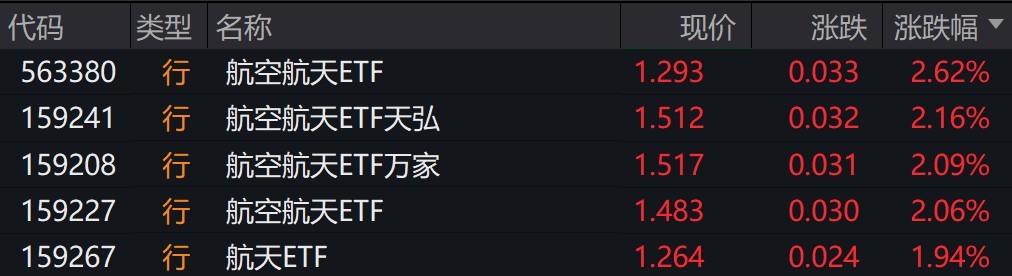 受盘面影响,航空航天相关ETF涨超2%。