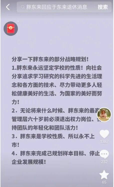 于东来写道:“60岁了,为了科学先进的发展模式、让年轻人勇敢承担使命、过年后正式退休、转为顾问,胖东来工作由胖东来决策委员会主持!坚定为国家和社会的美好、坚定启迪更多人们轻松快乐的生活……相信一定会更加美好!”