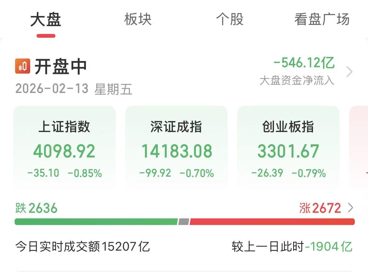 【大河财立方消息】2月13日,沪深两市成交额突破1.5万亿,较上一日此时缩量1904亿,预计全天成交金额近1.9万亿。